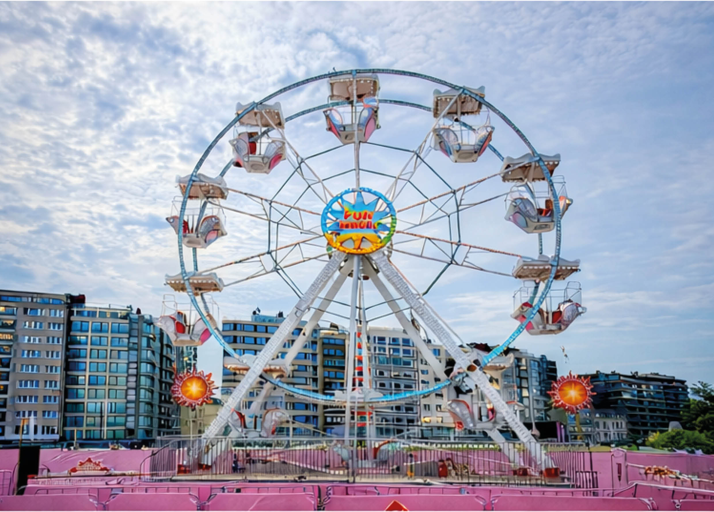 Het Fun-Wheel reuzenrad beschikt over 10 prachtig afgewerkte gondels en heeft een capaciteit van 40 personen per rit, waardoor het zowel voor kleinere events als grote publieksmomenten perfect inzetbaar is. Dankzij het neutrale witte design past het rad in elk concept en kan het volledig worden gepersonaliseerd met verlichting, kleuren en branding in jouw huisstijl of thema.