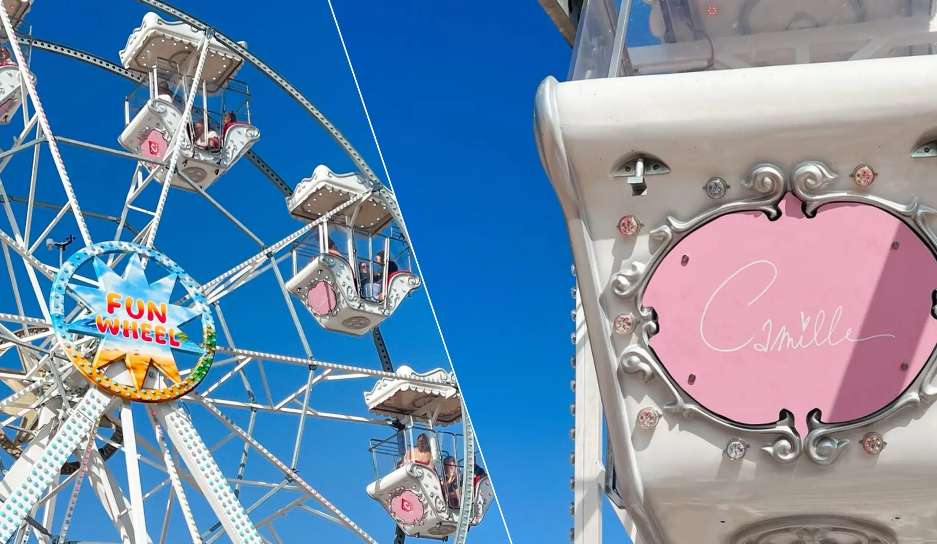 Niet alleen de constructie werd aangepast, ook de gondels kregen een stijlvolle afwerking. Elke gondel werd voorzien van unieke panelen met Camille’s handtekening en grafische elementen, zorgvuldig geïntegreerd in het design.