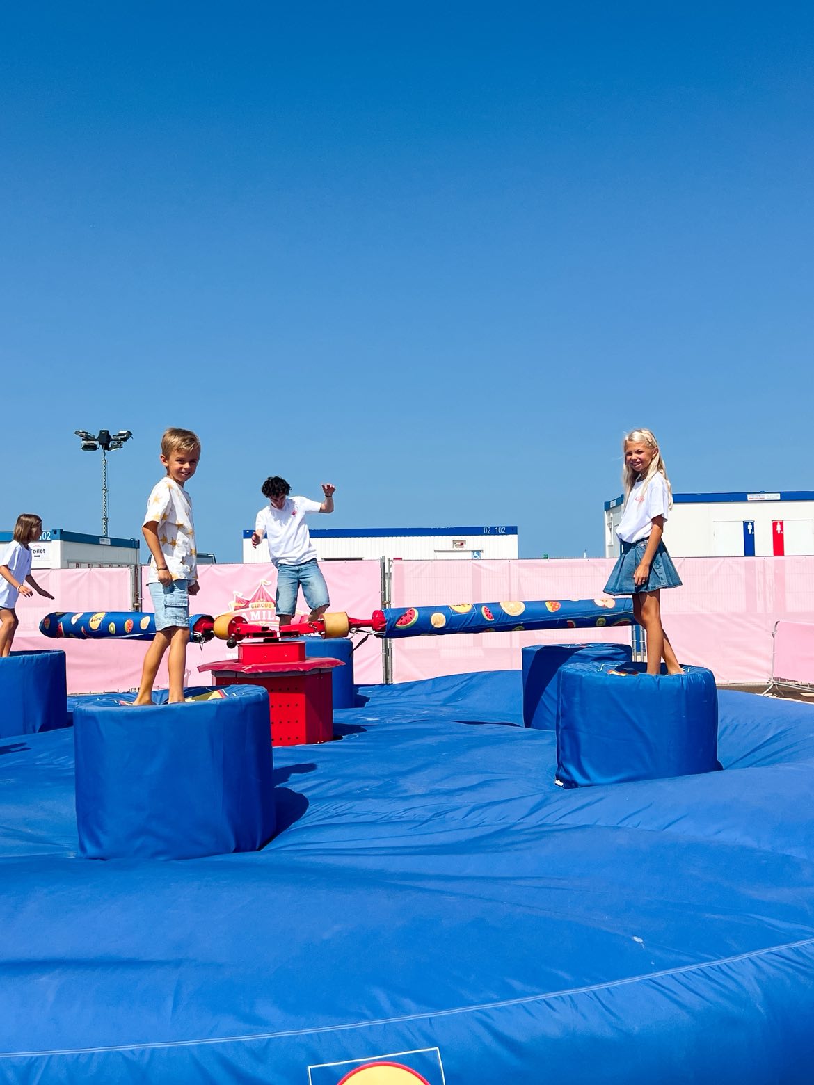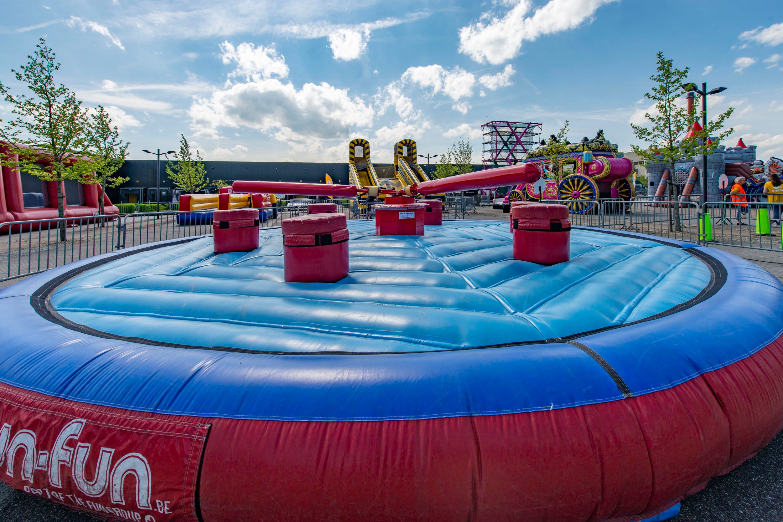 Deze attractie met hoge capaciteit bestaat uit zes verhoogde kussens, waarop deelnemers het tegen elkaar opnemen in een spannende competitie om over de roterende slinger te springen. Het vereist behendigheid, timing en concentratie, waardoor elke sprong een uitdagende en leuke ervaring wordt.