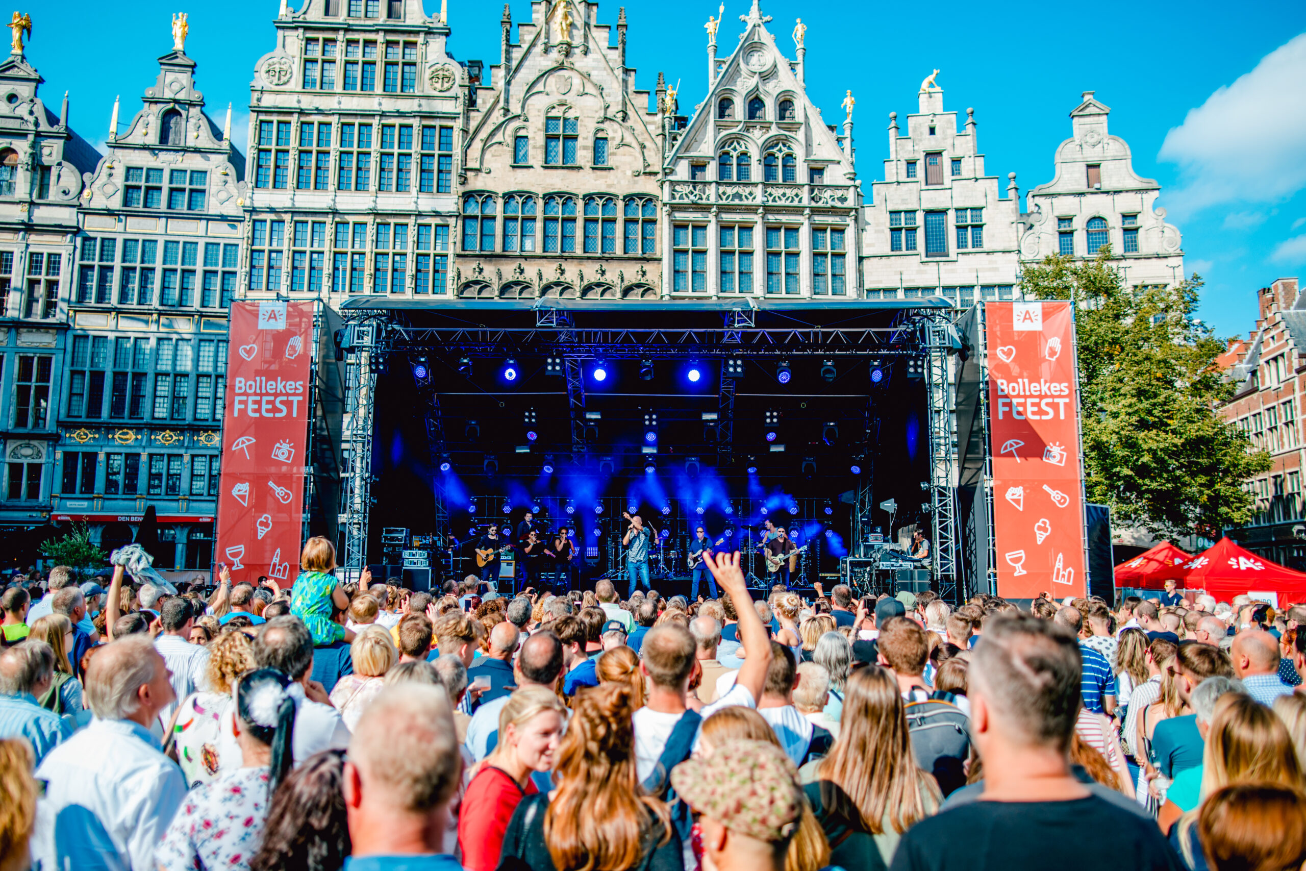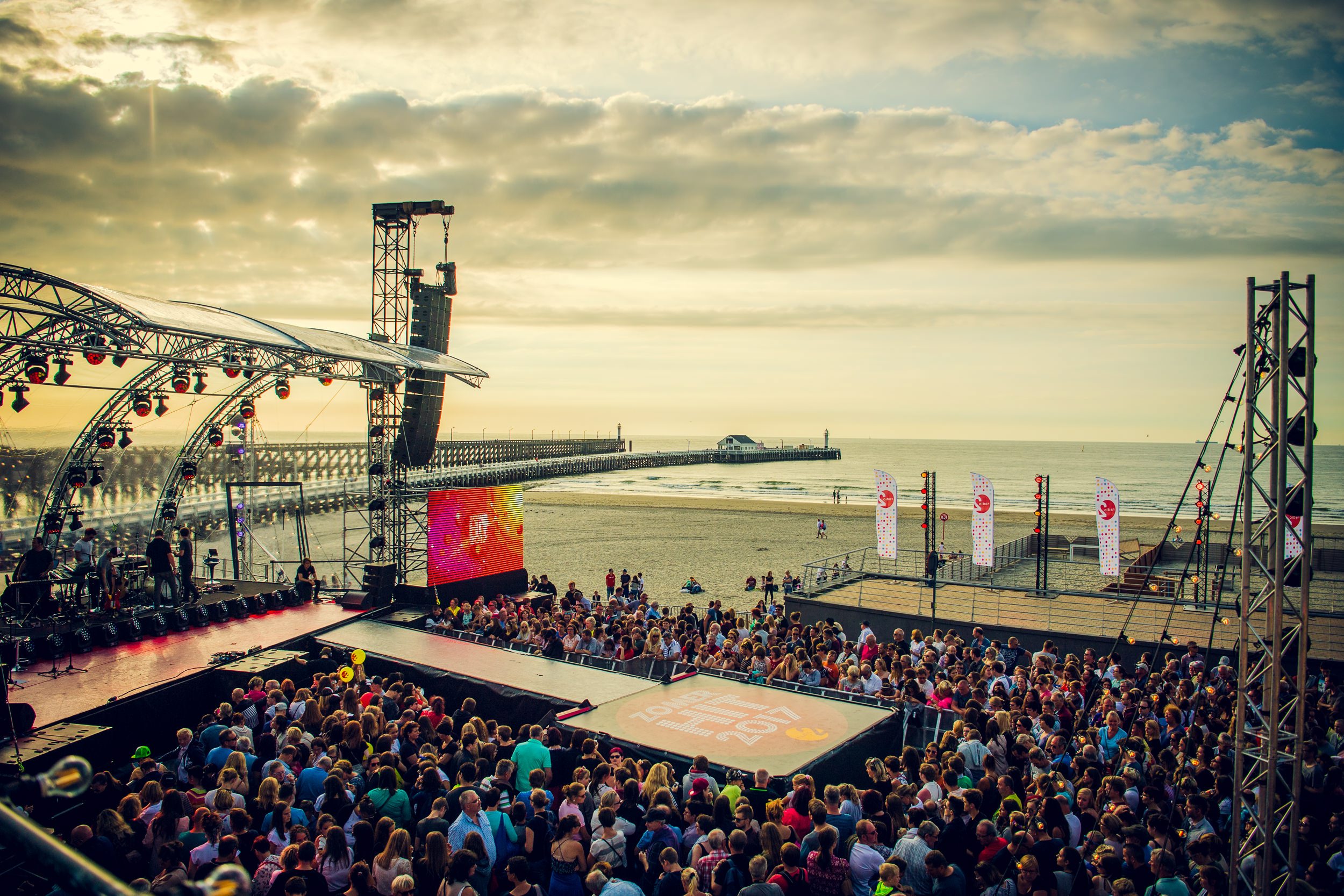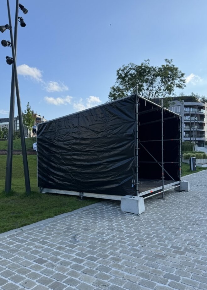 Het podium bevat een overstekend luifel over de speelvloer. Dit podium kan voorzien worden van zowel transparante als gekleurde zeilen en kan bovendien volledig gepersonaliseerd worden. Een podium perfect voor elk festival, optreden of concert.