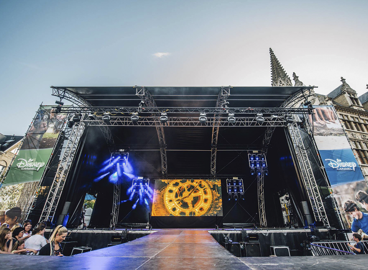 De Yellow stage is een mobiel concertpodium dat opgebouwd wordt in minder dan 3 uur tijd. Het podium is voorzien van trussen die van achter naar voren worden opgesteld.